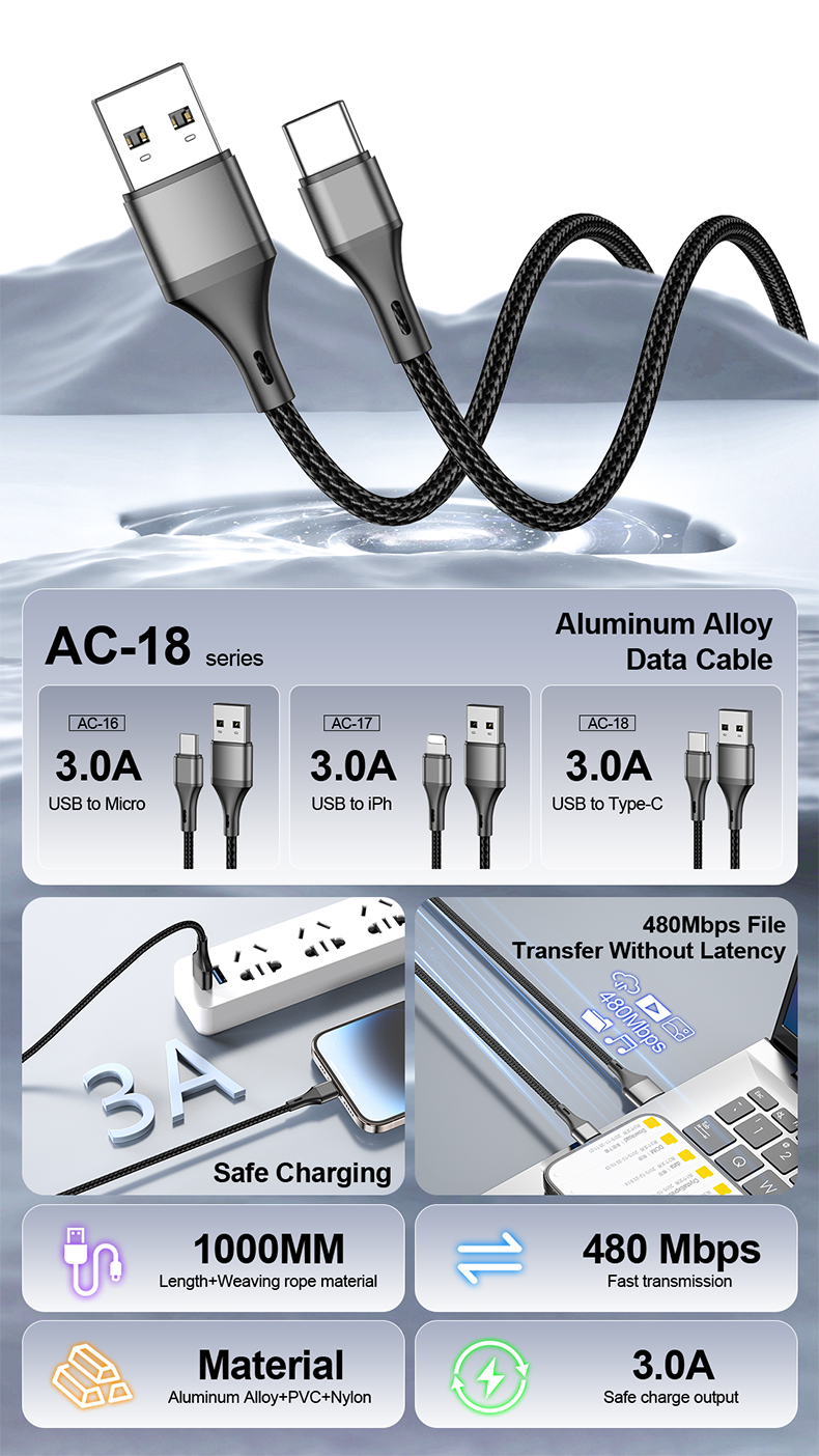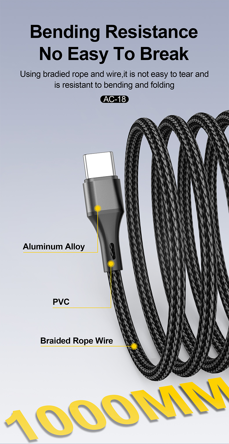 اختبر قوة الشحن الذكي مع كابل ASPOR AC-18 المصمم لتوفير أداء استثنائي يصل إلى 60 واط (60W) ⚡، مما يتيح شحنًا سريعًا وآمنًا لأجهزتك المختلفة. بفضل الشريحة الذكية المدمجة، يتم تنظيم تدفق الطاقة لحماية الأجهزة من ارتفاع الجهد أو الحرارة 🔋🔥.