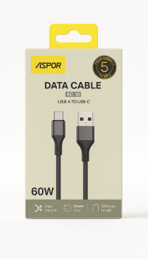 💛 ASPOR AC-18 – الكابل الذي يجمع بين السرعة، الأمان، والجودة الأصلية!