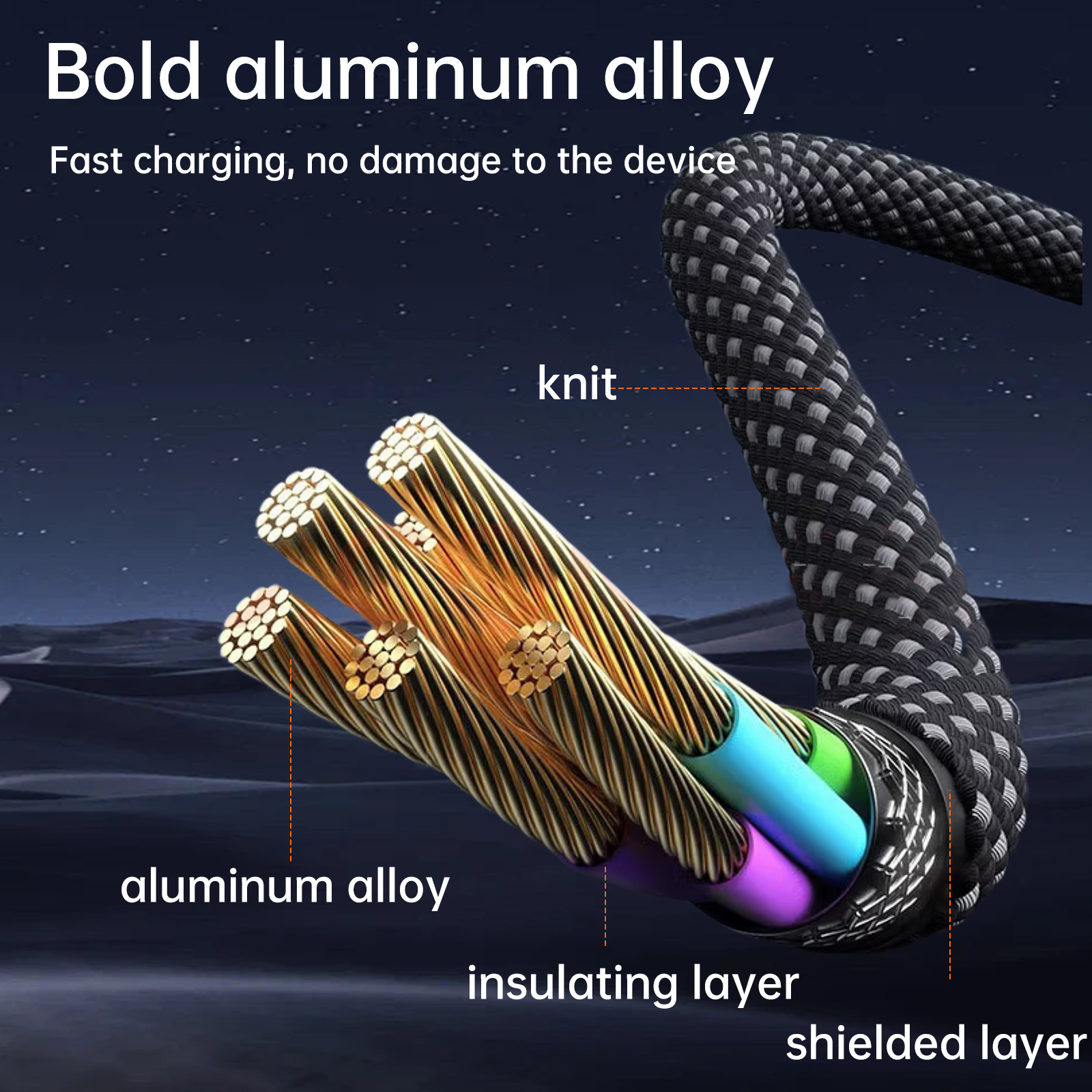 الكابل مصنوع من مواد مجدولة عالية الجودة لمقاومة الانحناء والتآكل، مع طول 1 متر (1000 مم) يوفر حرية حركة مثالية أثناء الاستخدام 💪.