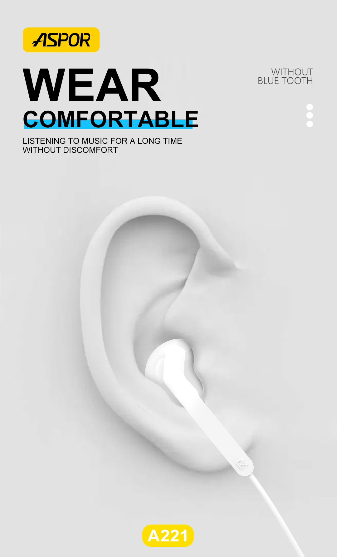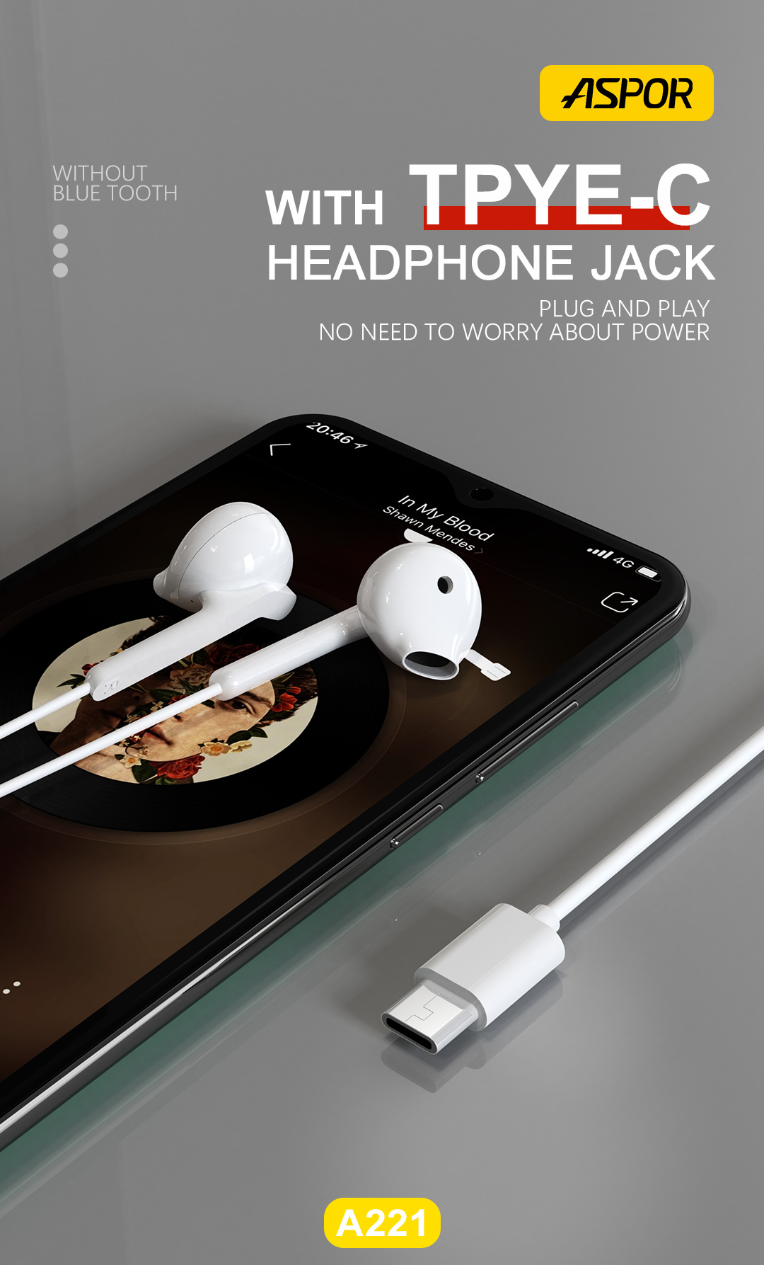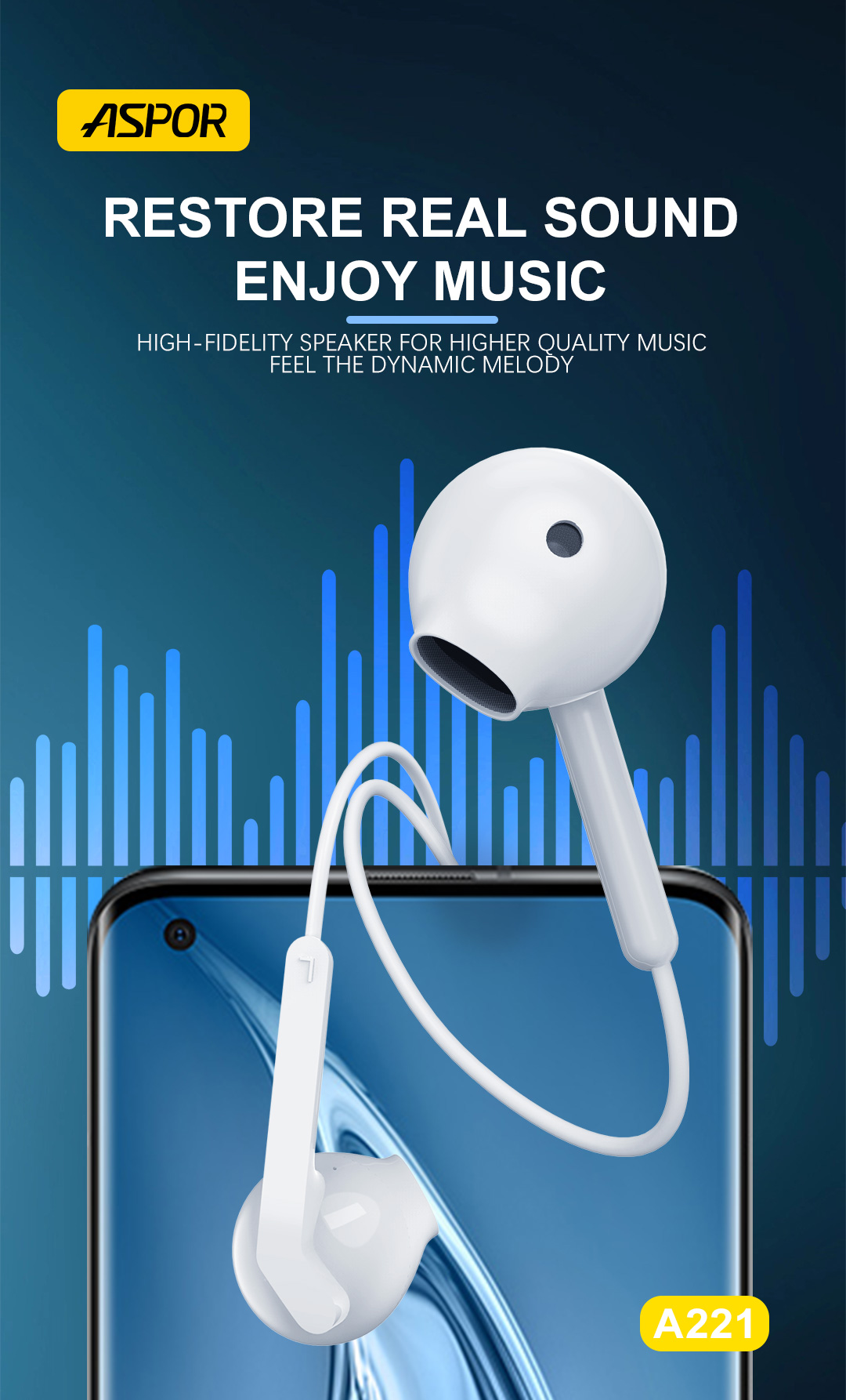 🎧 سماعة ASPOR A221 السلكية بصوت HiFi ومنفذ Type-C