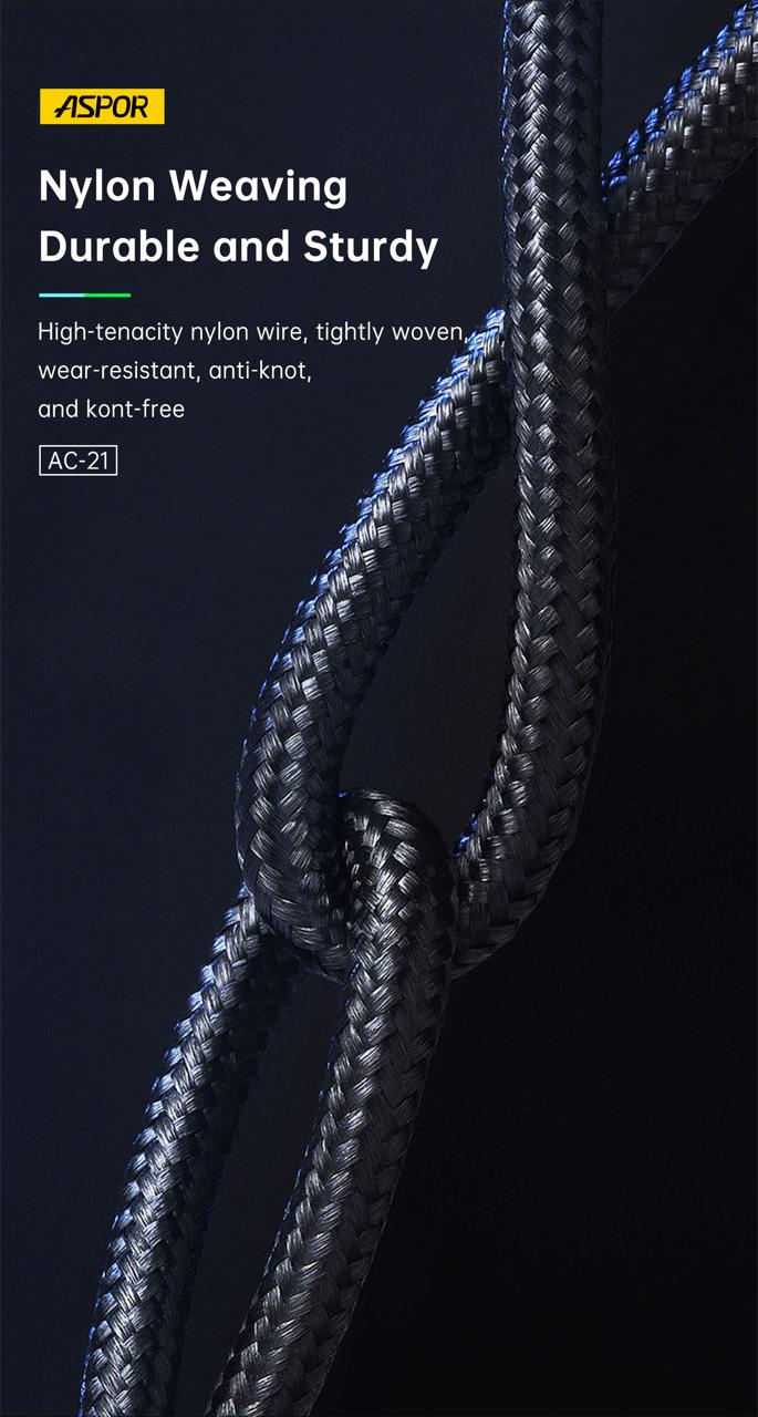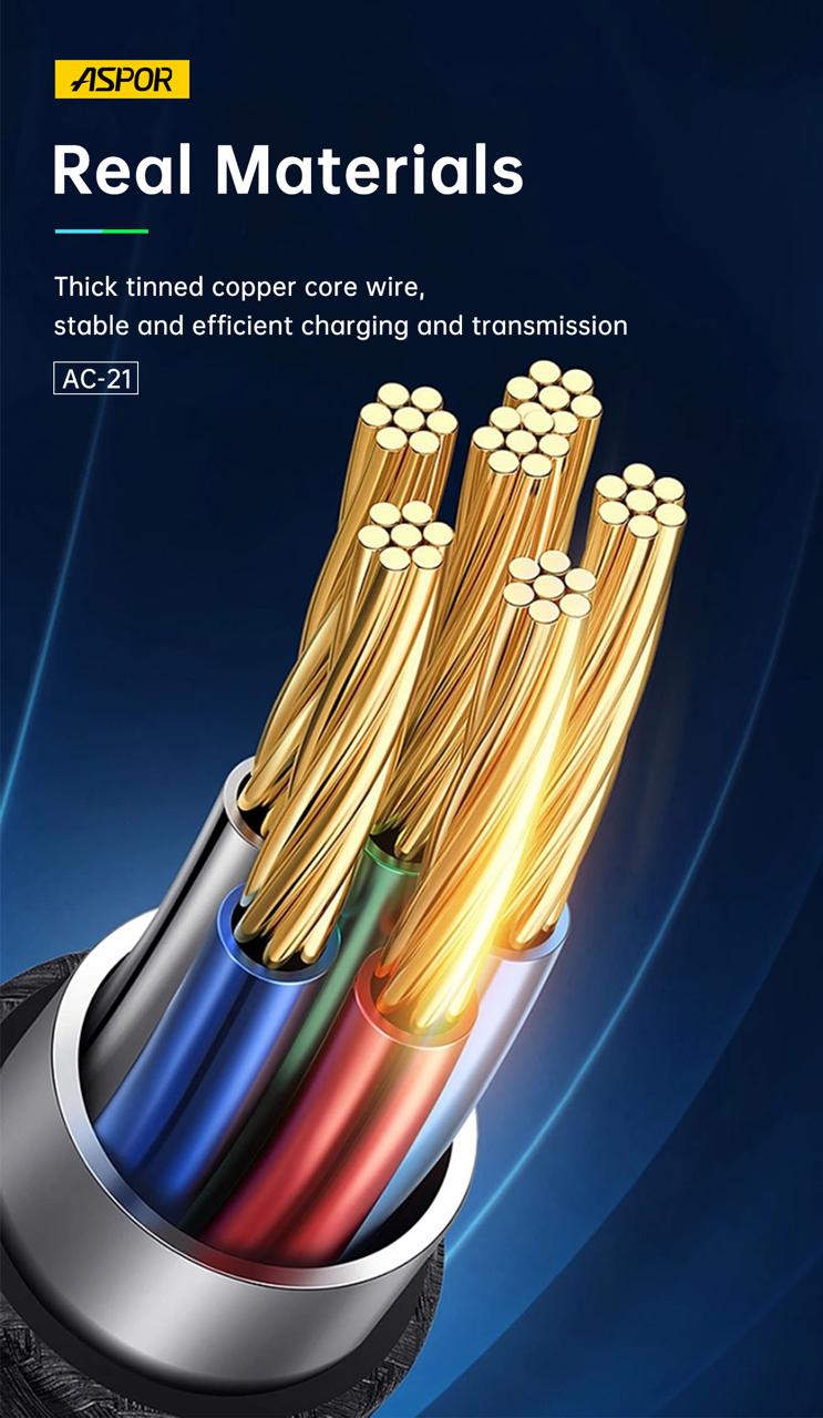 تمتع بتجربة شحن سريعة وآمنة مع كيبل ASPOR AC-13 المصنوع بجودة عالية لضمان الأداء والثبات.