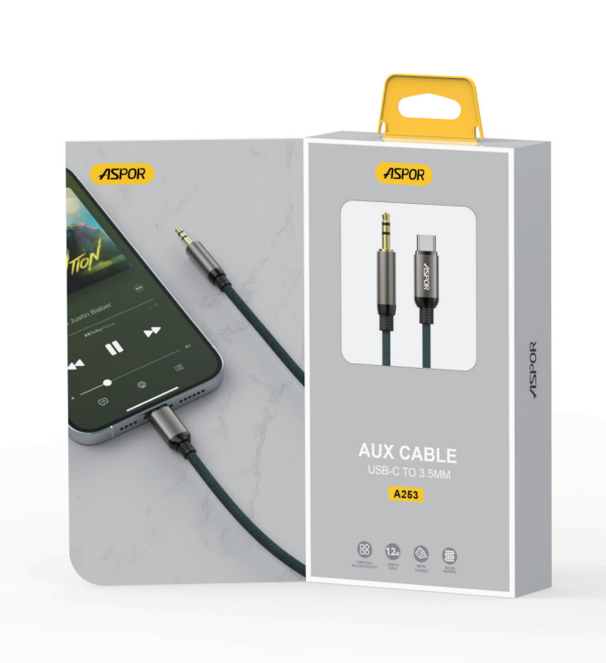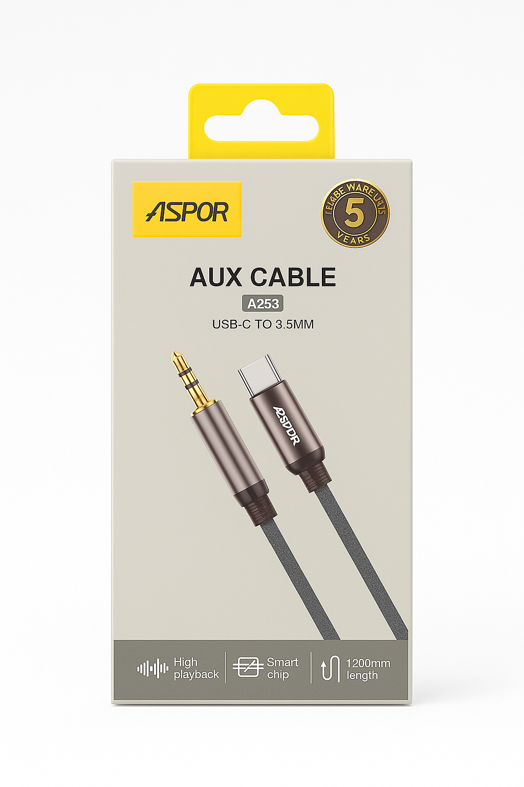 كيبل صوت ASPOR A253 – من USB-C إلى 3.5 ملم بجودة عالية
