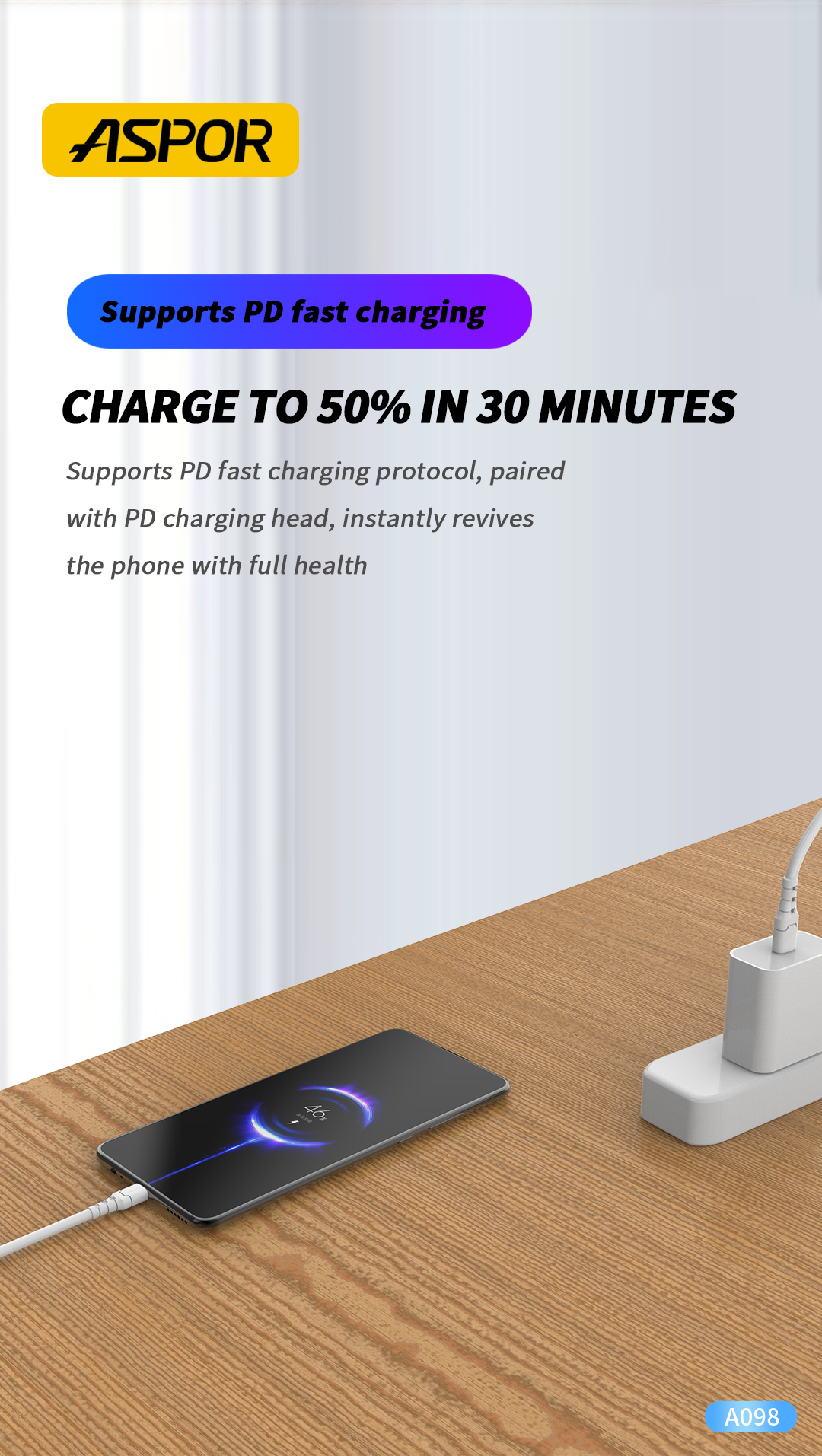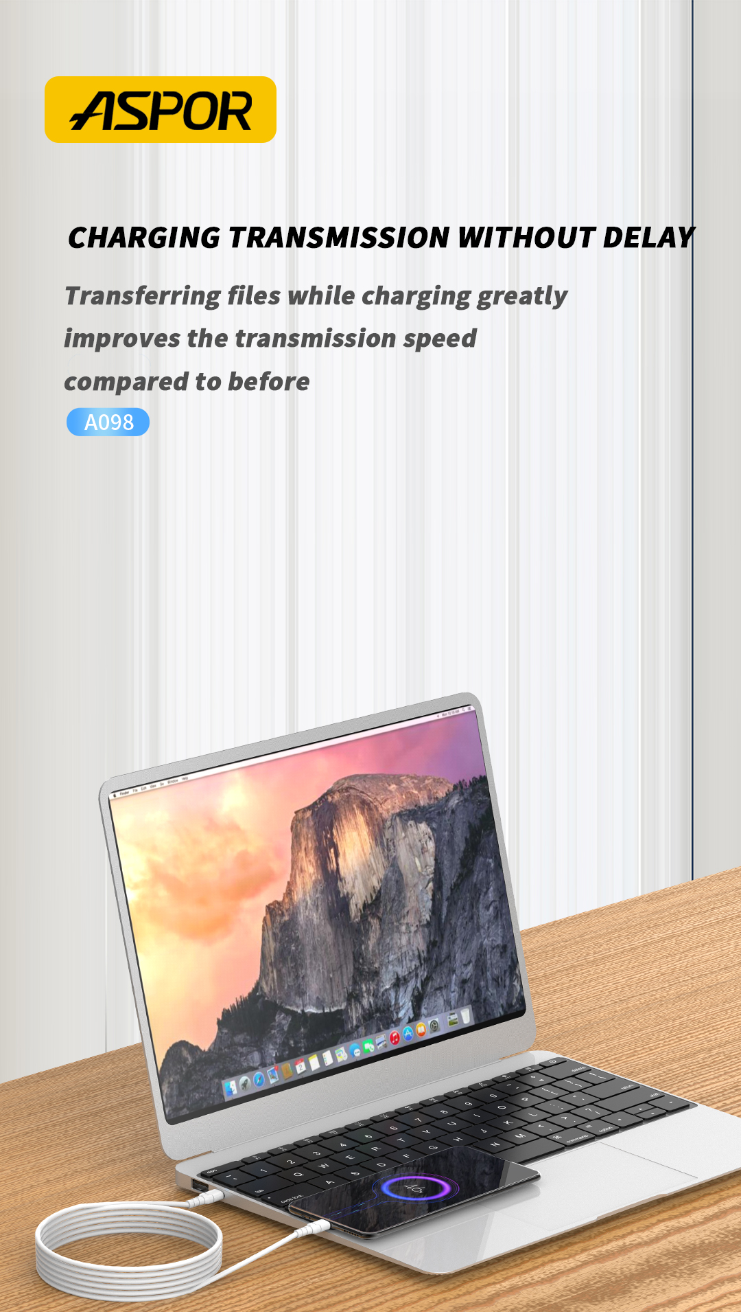 تمتع بأداء فائق وسرعة عالية في الشحن ونقل البيانات مع كابل ASPOR A098 المصمم بجودة عالية ليدعم جميع أجهزتك الحديثة.